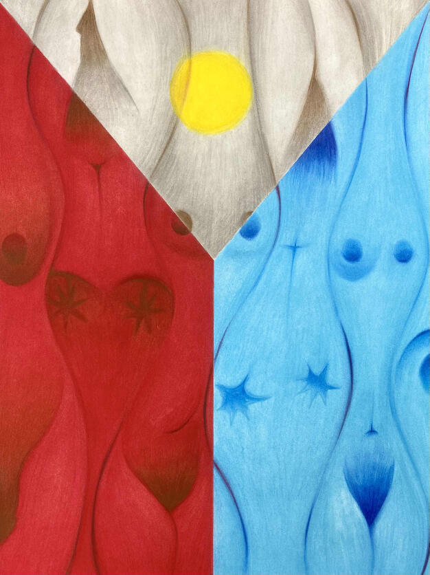 Bintana, 2023, soft pastels, charcoal, & ink, 18" x 24"